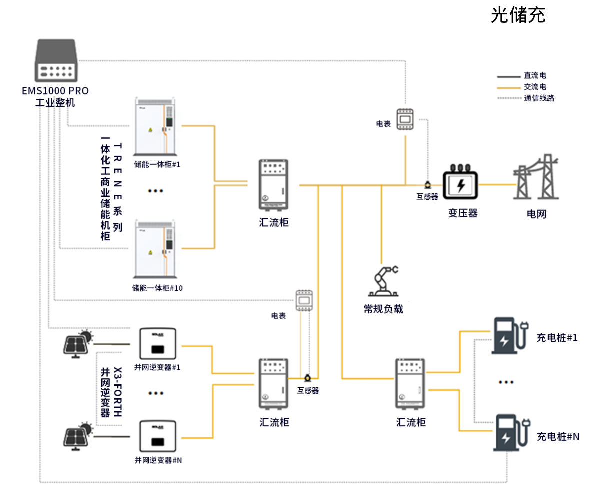 系统能够根据电网负荷和光伏发电情况,动态调整充放电策略,实现削峰填谷,降低电力成本,并在电网发生故障时保证关键负荷的电力供应。光储+解决方案能够满足工商业、园区以及充电设施等不同领域的需求,凭借其灵活的系统配置和智能调度能力,确保在多变的电力需求和环境下都能高效稳定运行,具有广泛的市场应用潜力。